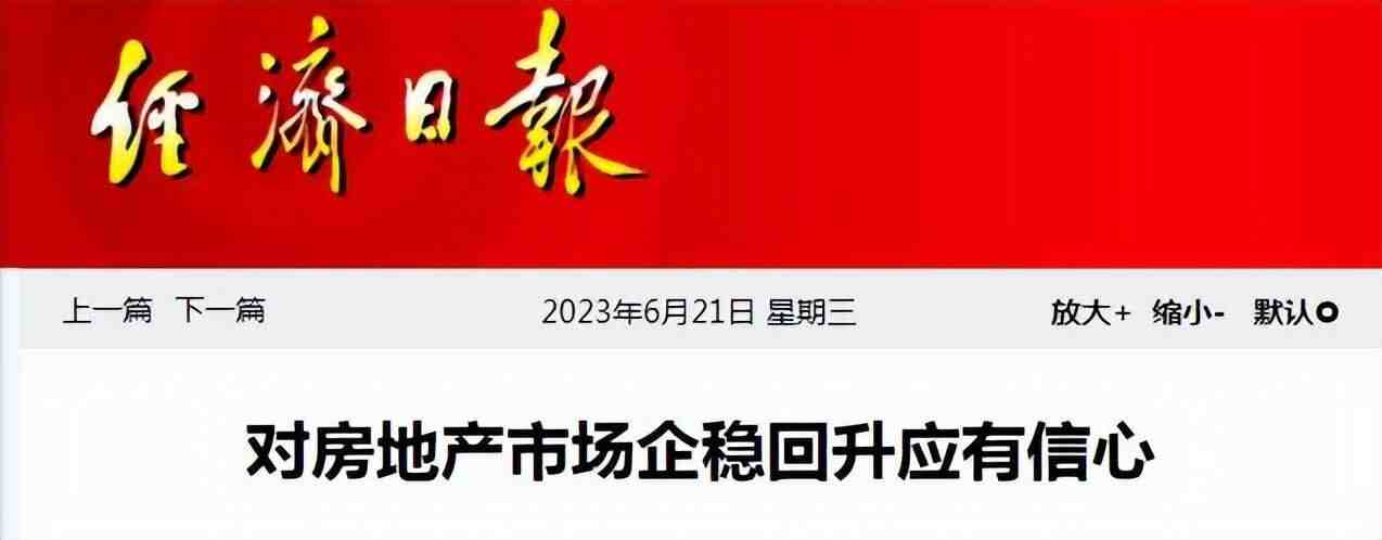 6月21日,经济日报发表文章《对房地产市场企稳回升应有信心》表示,房地产市场再度进入胶着状态。应该进一步稳预期、强信心、促转型,多措并举促进房地产市场平稳健康发展。