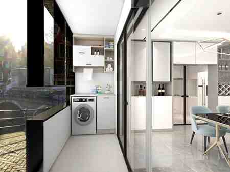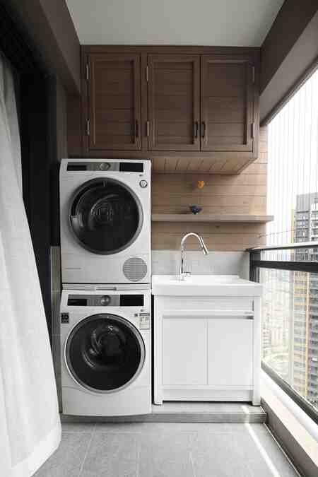阳台变身洗衣房,洗衣晒衣两不误,把洗衣机放阳台通风效果好,不容易坏,要是放卫生间的话气味重,时间久了洗衣机外层保护层容易脱落。洗衣机放阳台几个小细节注意一下,其他的只要设计合理到位就行。
