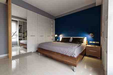 所以这种配色方法可以解决一些户型的缺陷,比如某个户型的横向空间很宽,是一种长方形的分布,那么这个户型里两边的墙面就可以使用重色。这样会显得空间更紧凑一些。