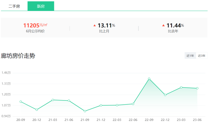 在2021年9月开始,新房价格有所上涨,到2022年6-9月整体市场直线上扬,从1.07万/㎡直接攀升到1.4万/㎡左右。