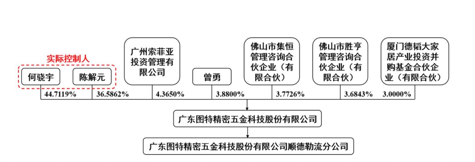 图特股份的前身为佛山市顺德区迎南五金有限公司,成立于2009年6月,由实际控制人何骁宇、陈解元共同出资设立。