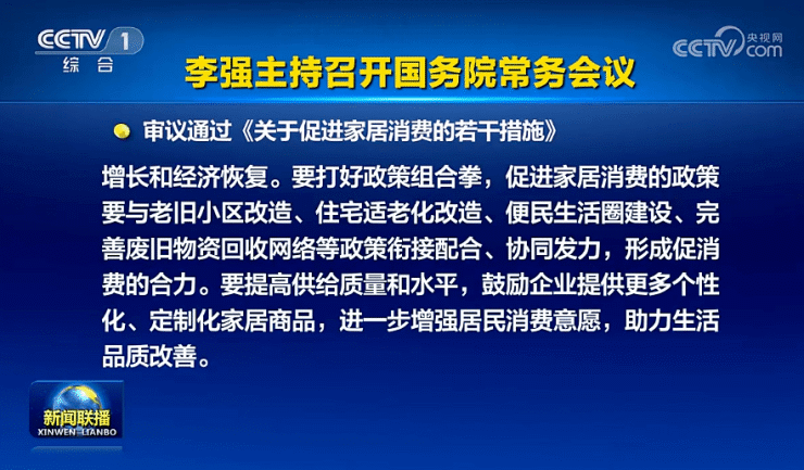 会议通过的《关于促进家居消费的若干措施》指出,基于家居消费涉及领域多、上下游链条长、规模体量大的特点,采取针对性措施加以提振,有利于带动居民消费增长和经济恢复。