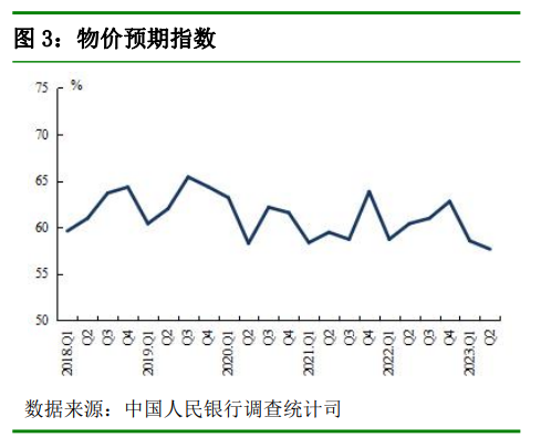中国央行发布2023 年第二季度城镇储户问卷调查报告:对下季度,物价预期指数为57.7%,比上季下降0.9个百分点。