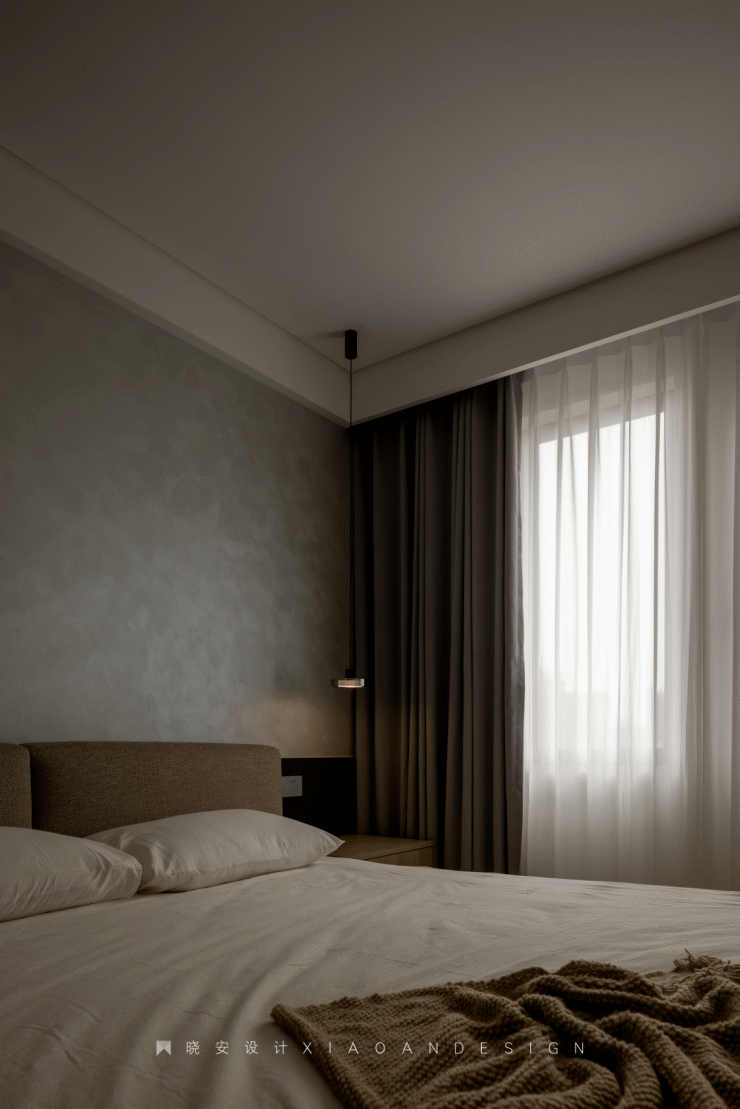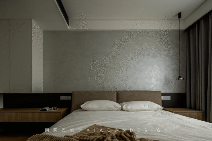 床头背景,延续简约的格调,以色彩分层凸显空间质感,让生活更精致惬意。“光的质量就是空间的质量”,在分层之间,隐藏了一道柔和不刺眼的灯光,进一步烘托了氛围,同时兼顾人性化与指引性。