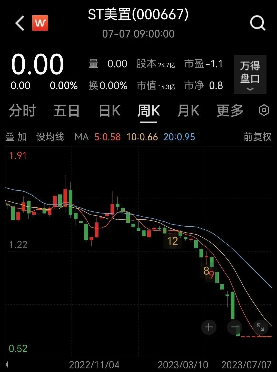 二级市场上,今年以来,ST美置持续在1元附近波动。 4月24日,ST美置首次跌破1元关口,随后连续大幅跳水。