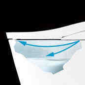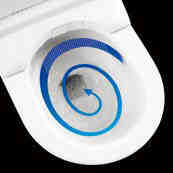 360漩涡式冲洗技术在确保高效冲洗的同时,还实现了节水、静音。强劲的水流形成360度漩流,全方位冲洗无棱坐便器内壁。