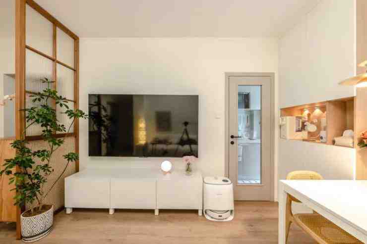 ▶客餐厅一体,白色+木色搭配打造原木奶油风