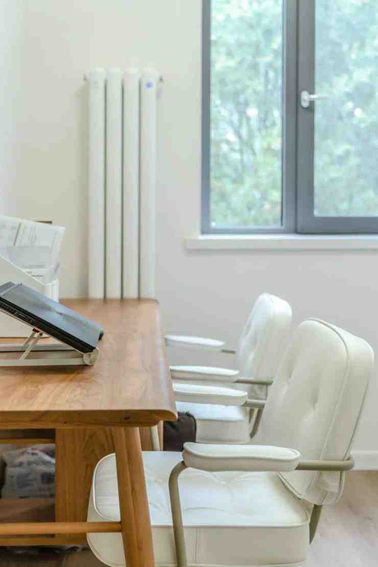 书房做整排收纳柜放换季衣物,双人位的黑胡桃长桌满足两人同时办公的需求,不做定制桌子,后续有了孩子可以换成婴儿床,空间可灵活变动。
