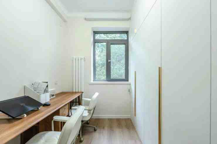 ▶书房墙体内移,定制双开门大衣柜+双人位办公桌
