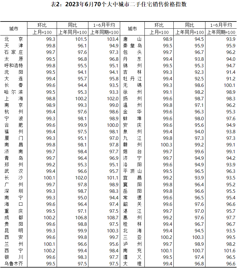7月15日,国家统计局发布“2023年6月份70个大中城市商品住宅销售价格变动情况”。