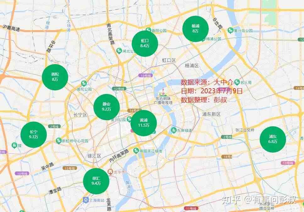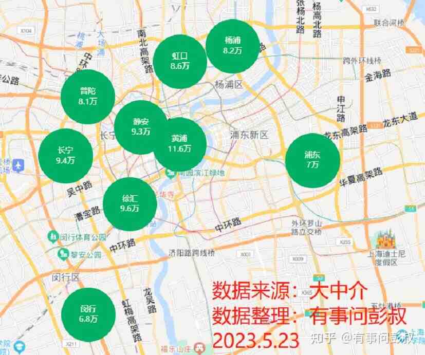 大家可以看到,上海黄浦区房价从11.6万跌至了11.5万,徐汇区房价从9.6万跌至了9.4万,浦东房价从7万跌至6.8万,等等的。总的来说,上海房价似乎跌的比北京房价更明显一些。