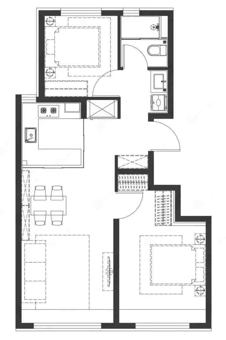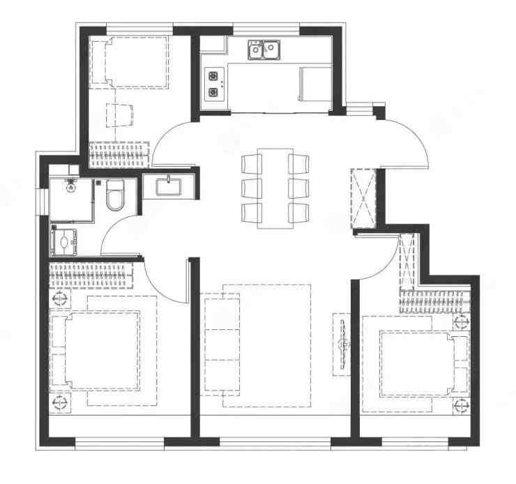 80㎡两居,同样南北通透,而且南向两个飘窗,作为入门级户型中规中矩。户型没什么问题,只是生活动线流畅度可能稍稍差了些。