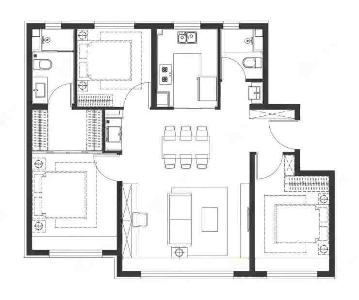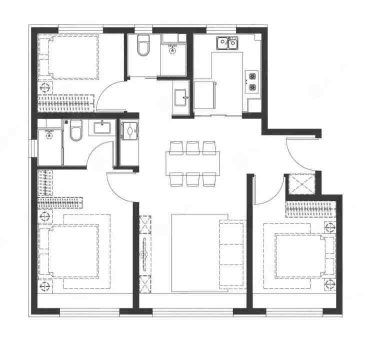 90㎡三居,南北通透,采光最好,南向三面宽,两个带有阳光的卧室,空间布局无面积浪费,生活动线非常流畅。