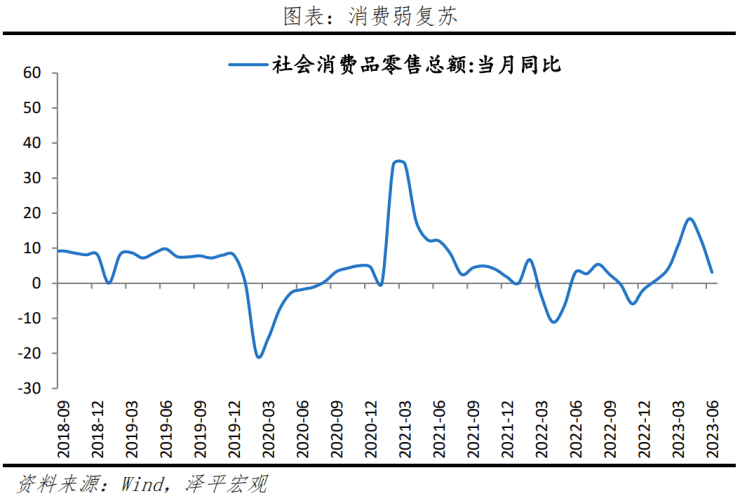二季度复苏态势并不强劲,来到六月社会消费品零售总额同比增长3.1%,较上月下降9.6个百分点;