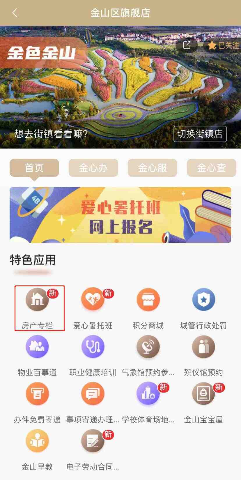 搜索“金山旗舰店”,进入“金山房产专栏”