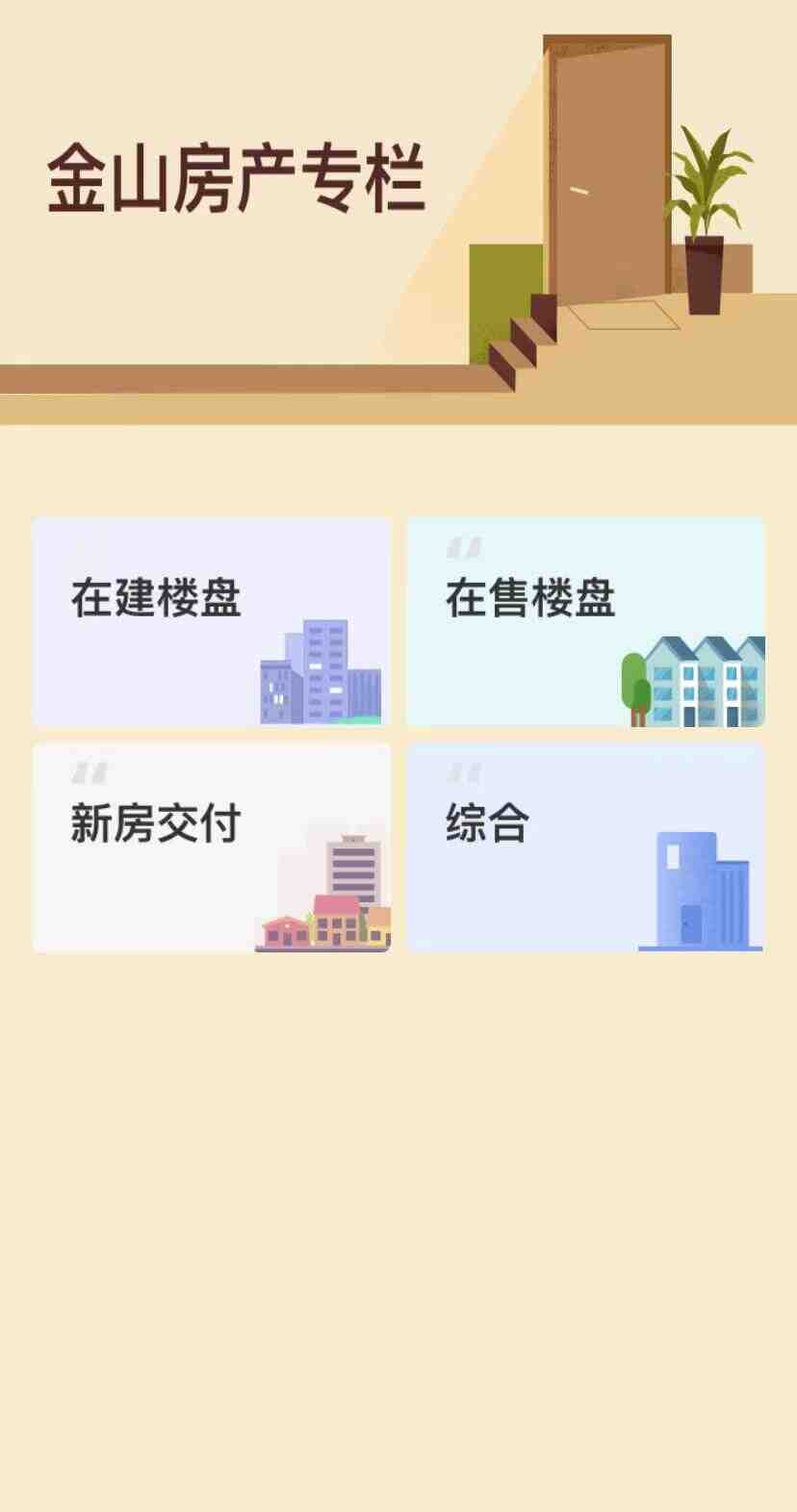 “金山房产专栏”包含在建楼盘、在售楼盘、新房交付、综合四大模块。楼盘信息即时更新,带领购房者线上看遍全区最新楼盘,根据自身对地段、户型、价位的需求找到最适合自己的房源的信息,助您在金山区安家。