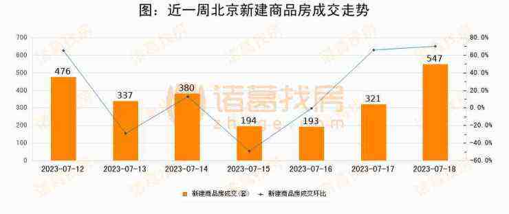 根据北京市住房和城乡建设委员会数据显示,2023年07月18日北京新建商品房成交547套,较昨日增加226套,环比上涨70.4%。近一周北京新建商品房日均成交350套。07月18日单日成交547套,高于近一周平均水平56.3%。