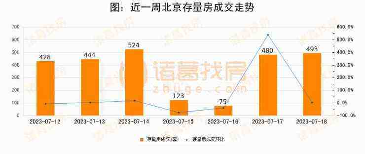 从存量房来看,2023年07月18日北京存量房单日成交493套,比昨日增加13套,环比上涨2.7%。从近一周存量房成交来看,北京存量房日均成交套数为366套,07月18日单日成交493套,高于近一周平均水平34.7%。