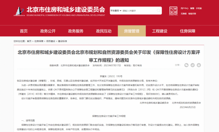 前两年,北京市住房城乡建设委联合北京市规划自然资源委发布了《保障性住房设计方案评审工作规程》(以下简称《规程》):
