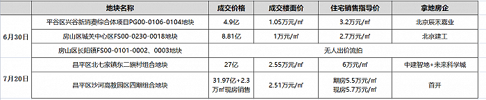 7月20日,北京挂牌出让2宗地块,分为位于昌平区高教园及昌平北七家东二旗1宗,总面积17.16万平方米,总规划建面26万平方米,总起价54.8亿元,最终成交价合计58.97亿元。