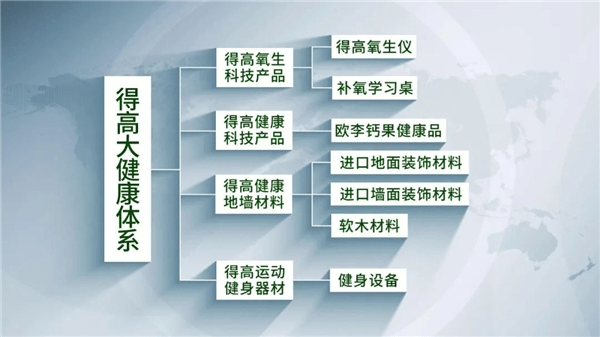 作为行业先行者,得高发展近30年来不断开拓创新,基于国际精品建材、健康家居产品优势,已在全国各区域形成分公司布局,专营店面更遍布百余大中城市,业务版图持续扩展。从进口地墙装饰材料到补氧学习桌、健康保健品、运动健身器材等健康业务领域,得高全方位、多领域、深层次地构建了得高大健康体系,形成全国多元业态协同发展的战略格局。
