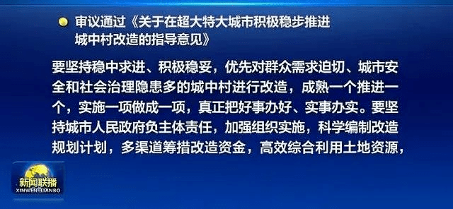 指出“在超大特大城市积极稳步实施城中村改造是改善民生、扩大内需、推动城市高质量发展的一项重要举措。”