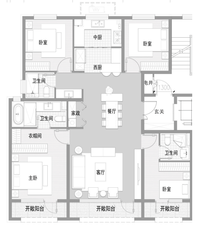 其他大户型都比较方正,尺度上,舒适性上,已经是大改善的标准了