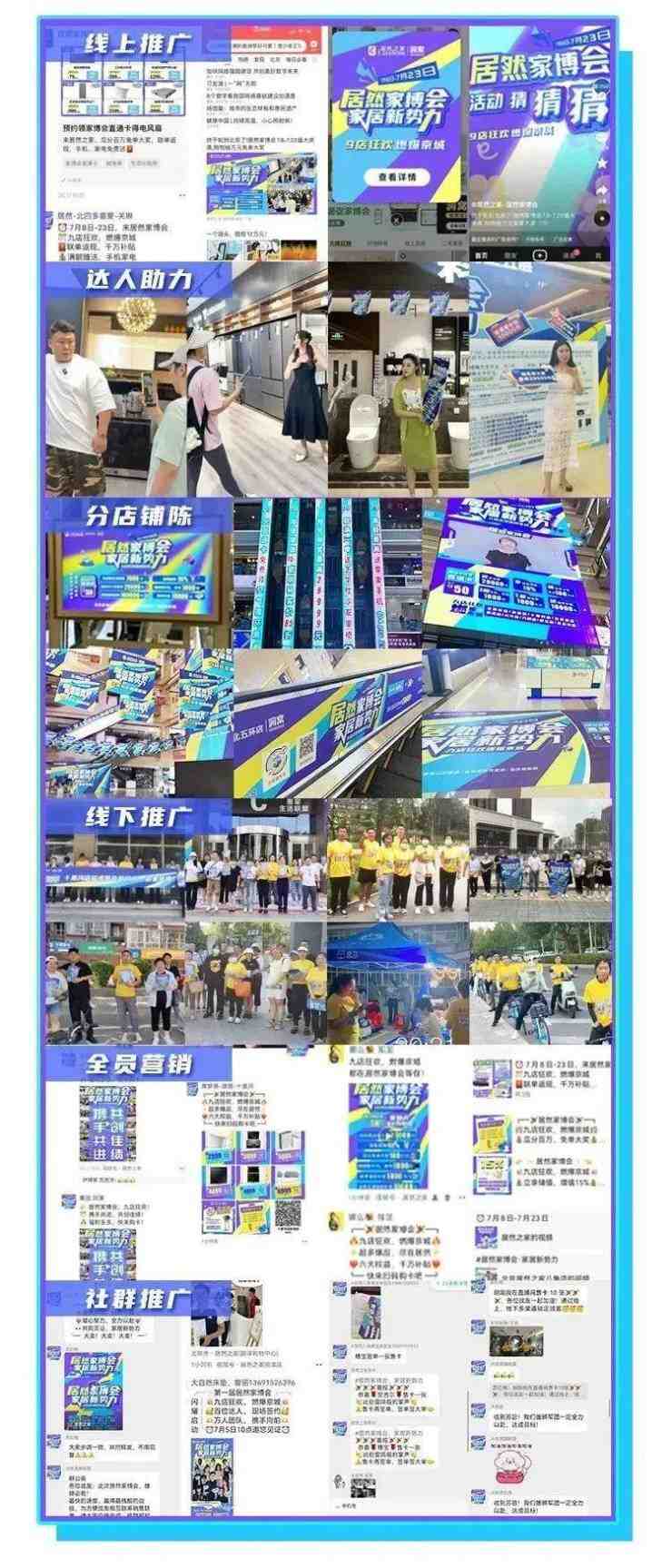 本次活动居然之家签约了千名本地头部网红达人,通过“探店+短视频+直播”的形式集中线上造势,以“储值增值15%、千万手机&家电免费送、联单返现、抽奖免单”等落地活动促成销量转化,内容化营销发挥了显著效果。