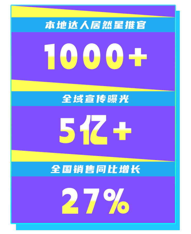 本次活动邀请了千名网红达人走进门店,进行线下探店、线上直播。同时结合视频号、小红书、抖音等多渠道进行活动的宣传与推广,全域曝光量累计超5亿,使活动能够触达千家万户。