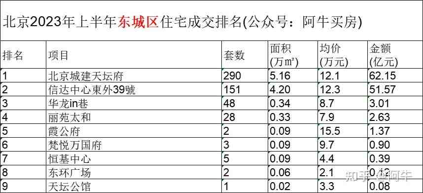 朝阳区住宅成交2637套,成交面积34.6万㎡,成交均价77464元/㎡,成交金额268.06亿元;成交排名如图: