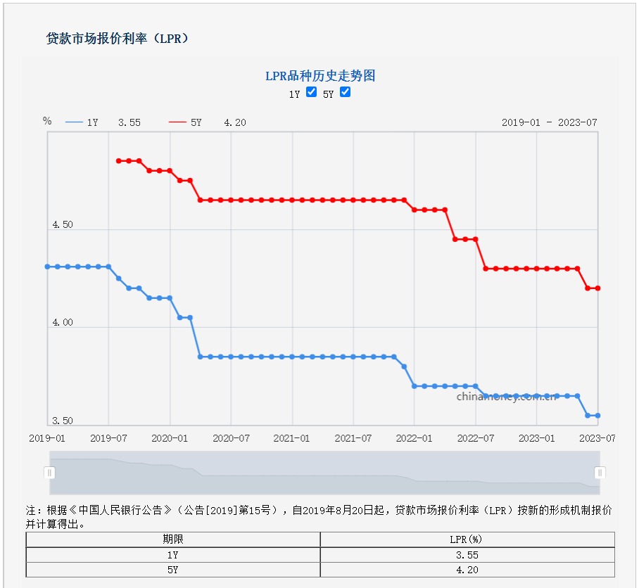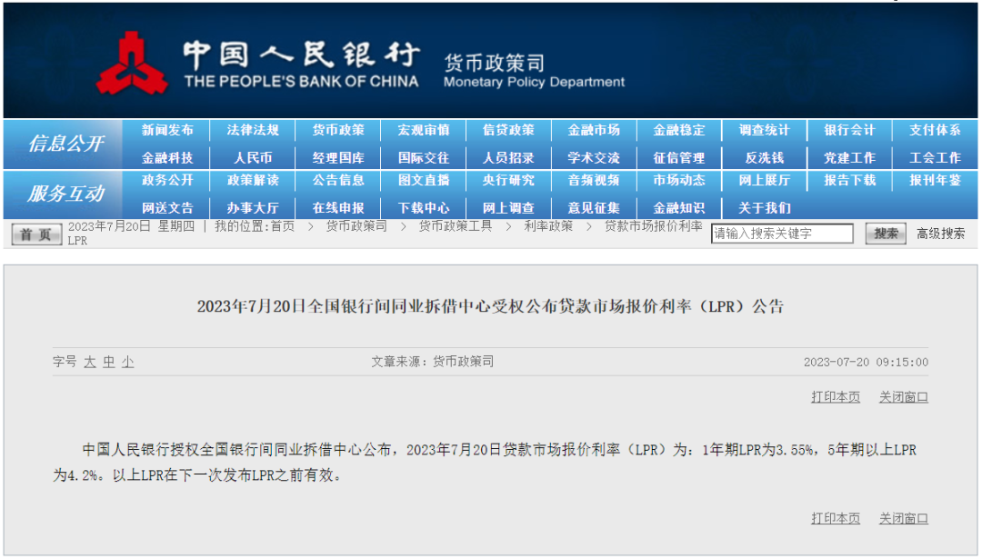 提示:公众号平台更改了推送规则,如果不想错过精彩文章,记得读完点个“赞”、点个“在看”,这样每次新文章推送才会第一时间出现在你的订阅列表里! 中国人民银行授权全国银行间同业拆借中心公布,2023年7月20日贷款市场报价利率(LPR)为:1年期LPR为3.55%,5年期以上LPR为4.2%。以上LPR在下一次发布LPR之前有效。 北京商贷利率: 首套房:LPR+55bp 二套房:LPR+105bp