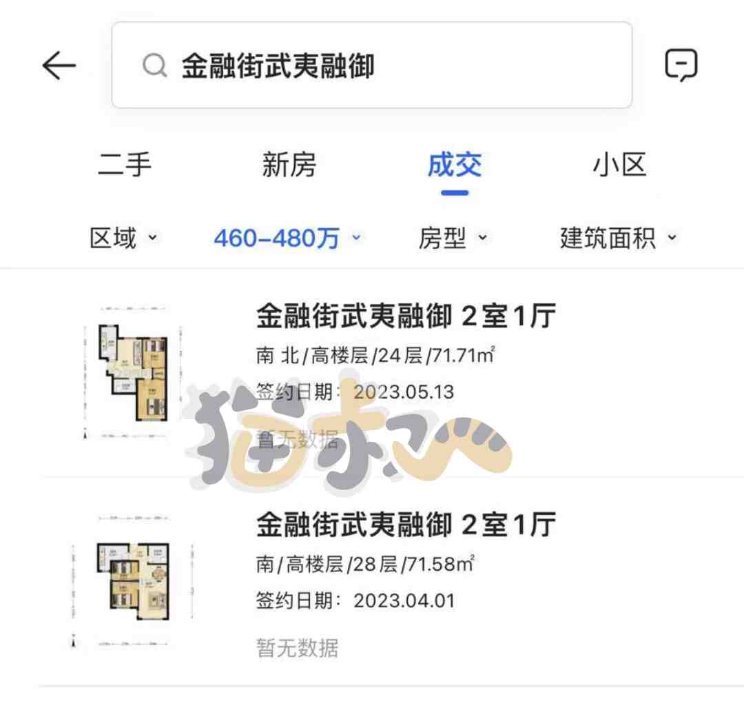 71平南向、南北两居,成交总价约460-480万,单价约6.4-6.7万/平。这个价格跟在售新房融御二期价格(均价6.5万/平)差不多,甚至比二期还贵了一点。武夷花园未来不会有新地供应,更不会有新盘,所以新盘京贸国际城、融御就成了绝版。开发商拿捏了这点,既然地段这么横,还费力做什么产品。我想说,但凡产品做好点,也不至于劝退客户,卖这么长时间。