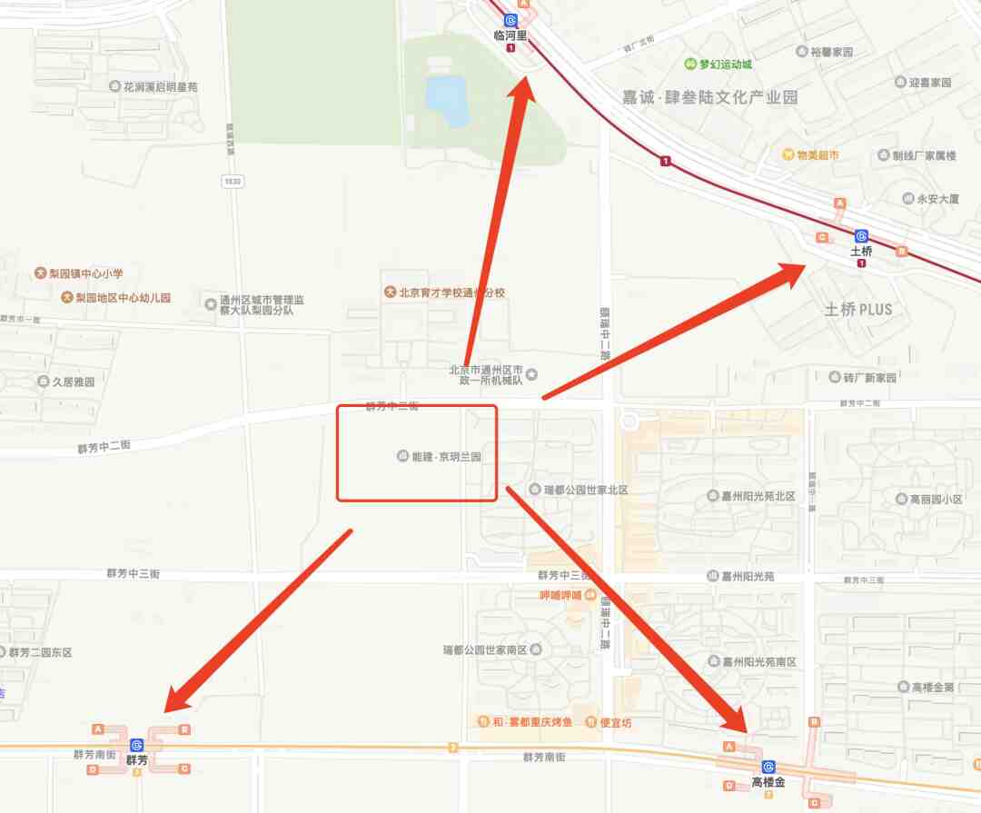 这里我们主要说下关注度比较高的能建京玥兰园。京玥兰园在通州临河里板块,交通位置优越,周边有多个地铁站,比较近的1号线临河里,7号线群芳站,步行距离1-1.2公里左右;附近生活配套齐全,小区对面就是育才学校。