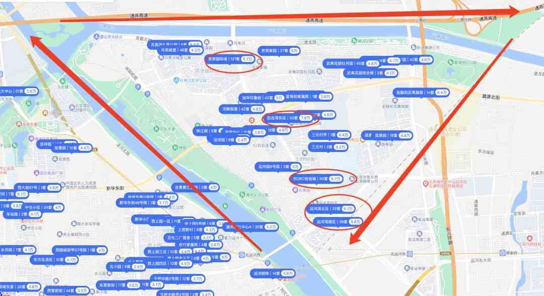 5、通州老城区通州北苑、果园、九棵树、梨园等沿着八通线沿线两侧,都是通州老城区。区域内主要以二手房为主,挂牌均价不超过4.5万/平。新房不多,在售四个新盘:国誉未来悦、鑫苑盛世天玺、通州万国城MOMA、京贸国际公馆。以上详细项目分析加私信获取。