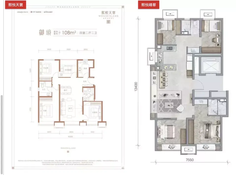 不过比不过旁边兄弟项目——熙悦天寰108平的四居户型,南北通透,户型方正,空间设计甩熙悦晴翠不止一条街!
