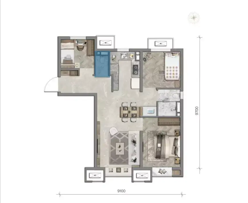 建面约90平样板间