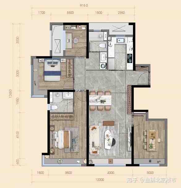 建面约128㎡四居,这是血拼哥最推荐的户型,较为方正,四叶草户型,动线也较为合理。