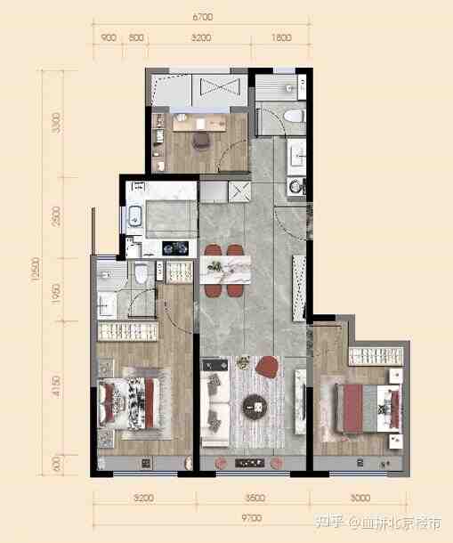 建面约106㎡三居,南向三面宽,南北通透,尺度与舒适性都有保证,卫生间都是明卫。