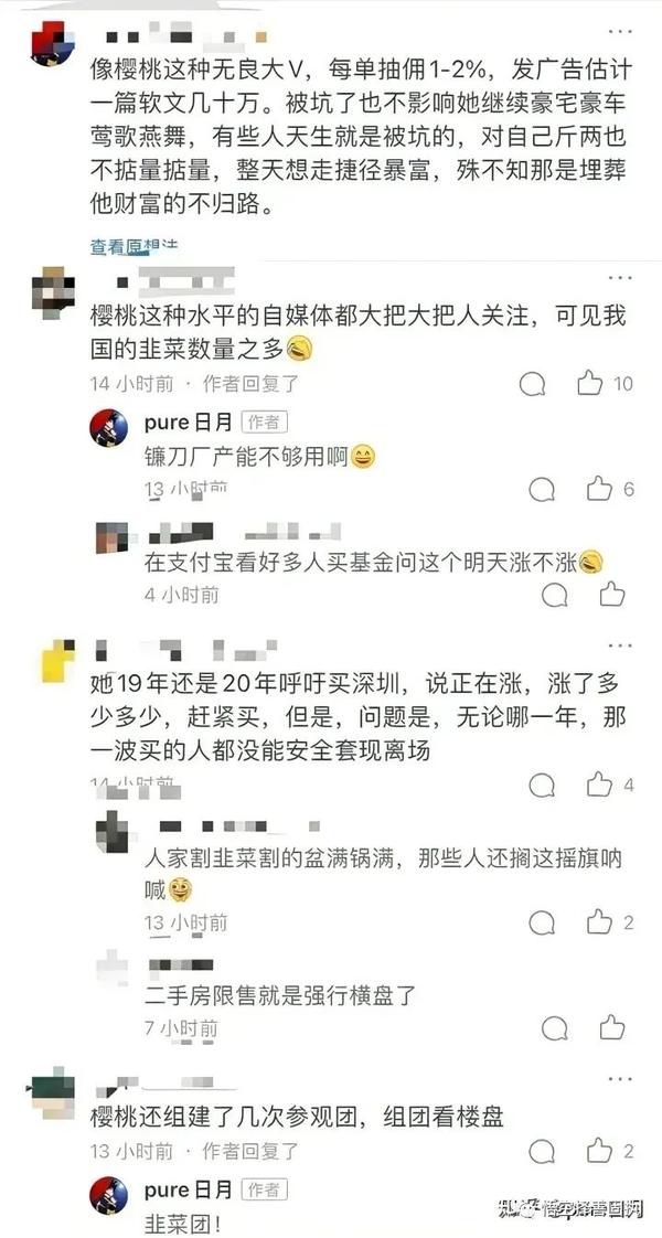 像樱桃这种无良大V,每单抽佣1-2%,发广告估计一篇软文好多个万。被坑了也不影响她继续豪宅豪车莺歌燕舞,他们可能还是明知道是坑而故意上的,为了就是博取信任。