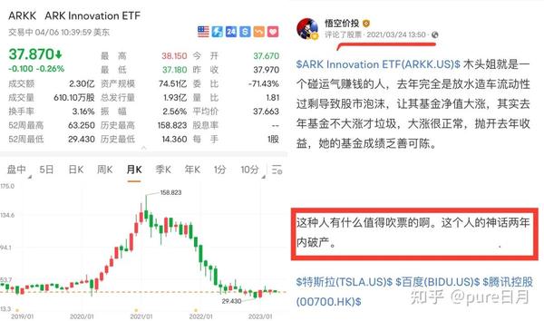 记得我在木头姐最不可一世的时候(2021年3月)就说了其基金收益高就是碰运气,是美国大放水成就她的,历史收益率看其自身水平一般,并精准断言其神话两年内破产,事实证明——我是对的。对了,期间我在做空蔚来。