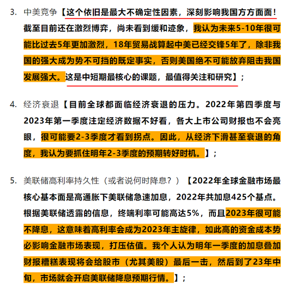 如下图示,为《2023年投资展望:欲扬先抑,播种之年!(5000字)》文章中关于核心基本的部分总结,中美竞争白热化是最值得关注的基本面如果老读者认真读过我写的历史文章,面对本轮寻底完全可以做到风轻云淡,而且由于我们是有准备的人,甚至笑对寻底。
