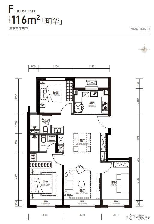 主力户型:F户型 约116㎡ 三室两厅两卫