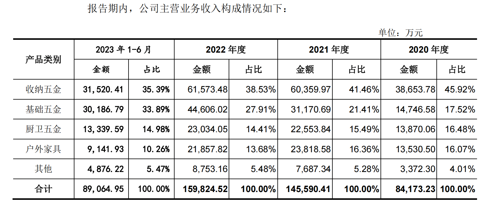 也基于此,悍高的基础五金产品在总收入中的占比从2020年度的不到20%,到2023上半年提升至33%。与收纳五金产品的占比基本持平,成为给集团贡献收入的第二大业务。