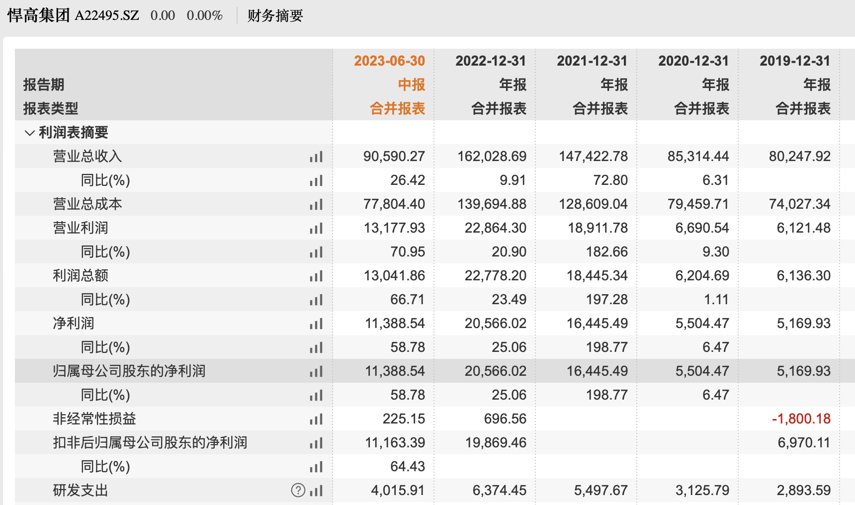 2023上半年,悍高集团实现营收9.06亿元,同比增长26.42%;归母净利润1.14亿元,同比增长58.78%;扣除非经常性损益后的归母净利润1.12亿元,同比增长64.43%。截止2022年6月,悍高集团总资产扩大至15.97亿元。