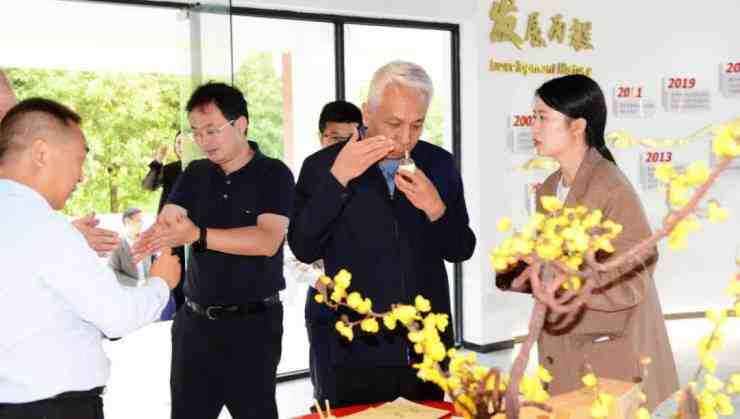刘首文(右二)、陈政(右三)正在认真体验使用蜡梅精油