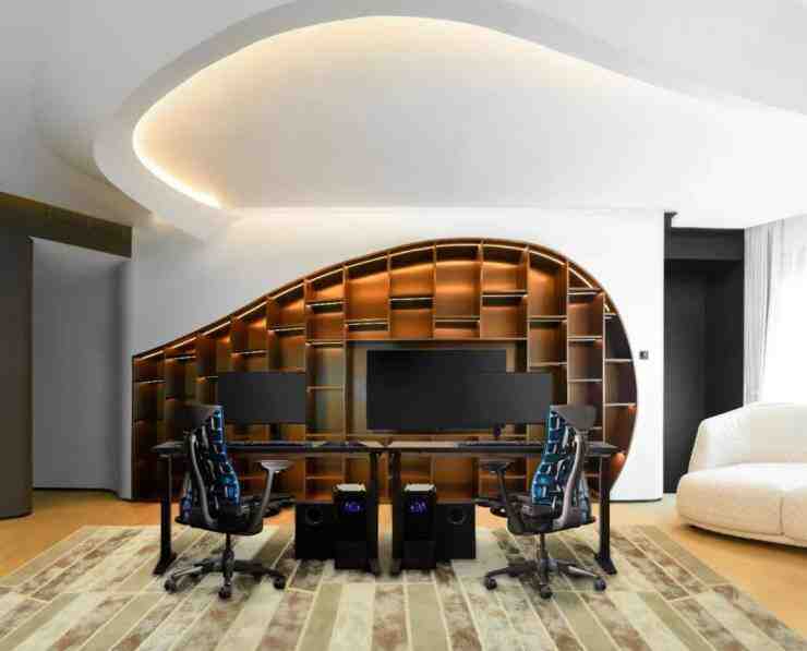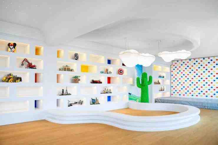 整个公共空间通过曲线的设计手法将亲子,潮流艺术,和电竞这三个主题串联开来,休息区大量的留白给予未来更多的可能,空间具有对生活无限的包容性,串联起过去,延展到未来。