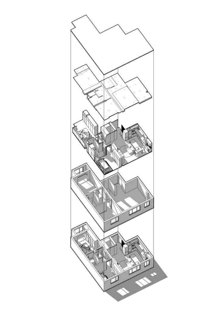 设计轴测图更加直观立体的展示出空间的结构,空间的布局、入住后的室内动线。使得方案更故事性和逻辑感的流畅表达。