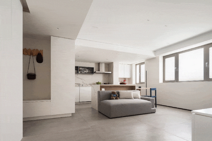 脱下鞋、卸下约束,正是这个家进入松弛的起点。在这 60㎡ 的家中各处被精雕细琢,光漫漫的洒进来室内。