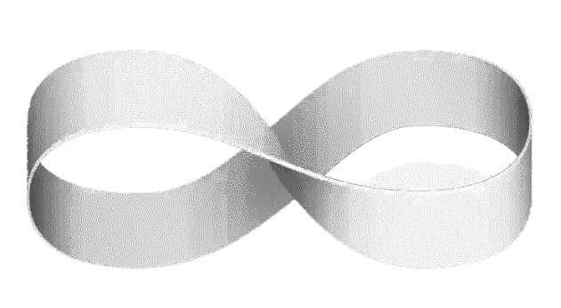 将一条带子的两端连接,将其中一端旋转180°。由此得到的单面曲面叫作莫比乌斯带,又称莫比乌斯环。