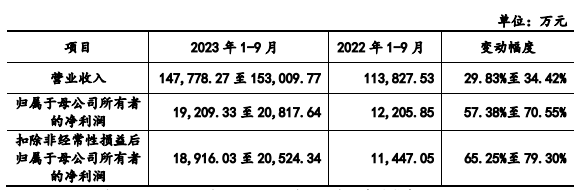 经初步测算,公司预计2023年1-9月实现营业收入14.78亿元至15.3亿元,预计同比增长29.83%至34.42%;预计归属于母公司所有者的净利润为1.92亿元至2.08亿元,预计同比增长57.38%至70.55%,公司预计业绩保持稳步增长。